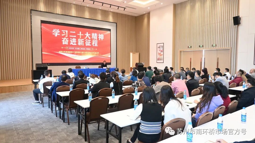 10月31日,南环桥市场党委组织召开学习党的二十大精神专题宣讲会,邀请苏州市委宣传部原副部长、市党史学会会长高志罡,对党的二十大精神进行详细解读。南环桥市场党员、干部、商户代表等共80余人参加宣讲会。