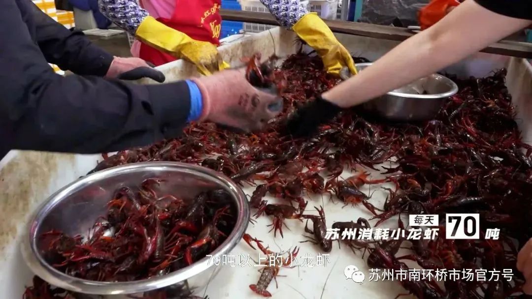 当前,正处小龙虾的销售旺季。虾肉鲜嫩肥美,深得消费者的喜爱。据统计,目前苏州人民每天要吃掉70多吨的小龙虾,而作为苏州一级综合性农产品批发市场的南环桥市场,承担了苏州市面上85%左右的小龙虾供应量。