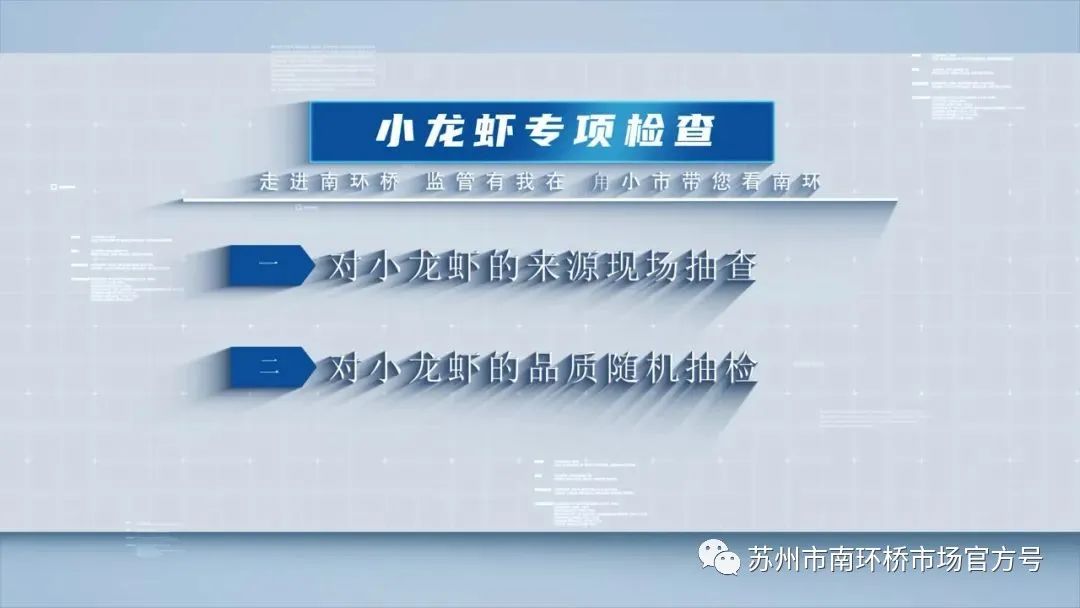 此次专项检查共分两步:一是对小龙虾的来源进行随机检查;二是对小龙虾的品质进行现场抽检、现场出结果。