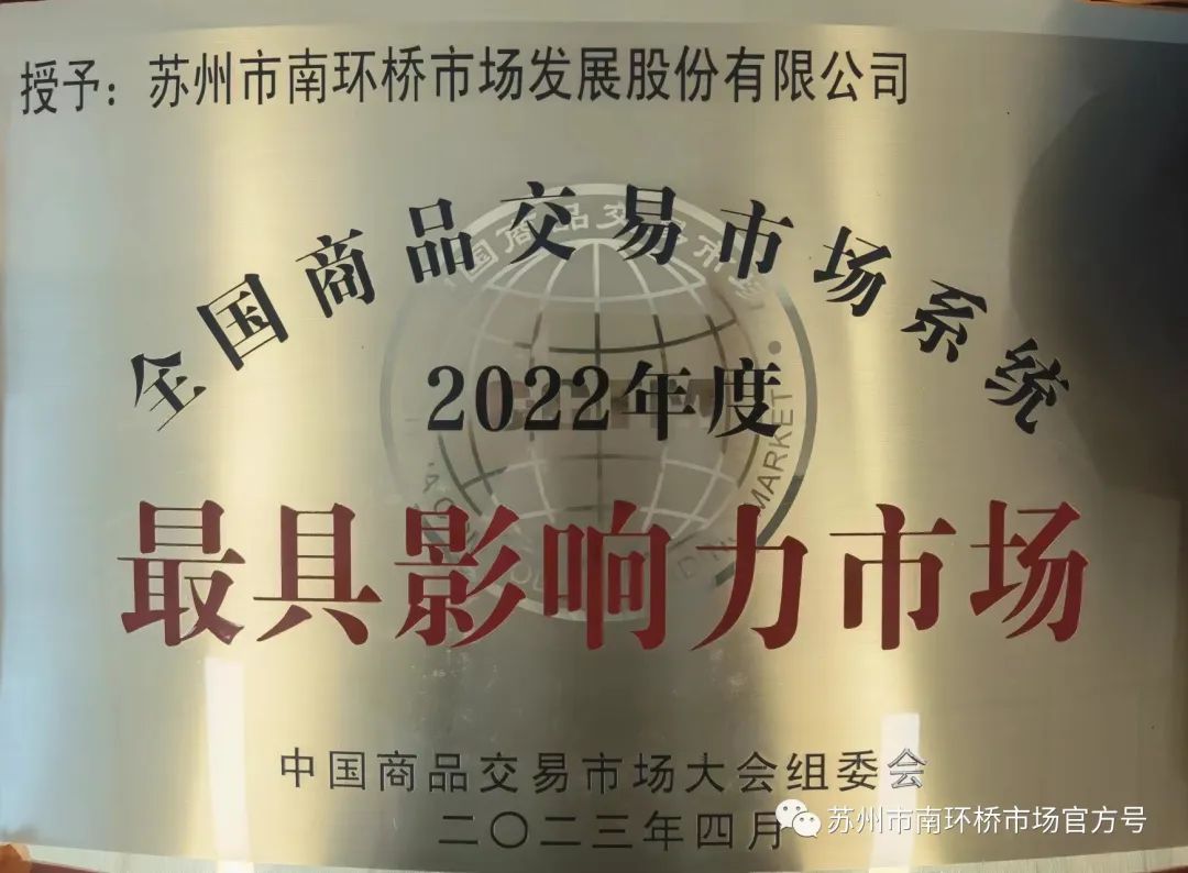 “全国商品交易市场系统2022年度最具影响力市场”荣誉称号