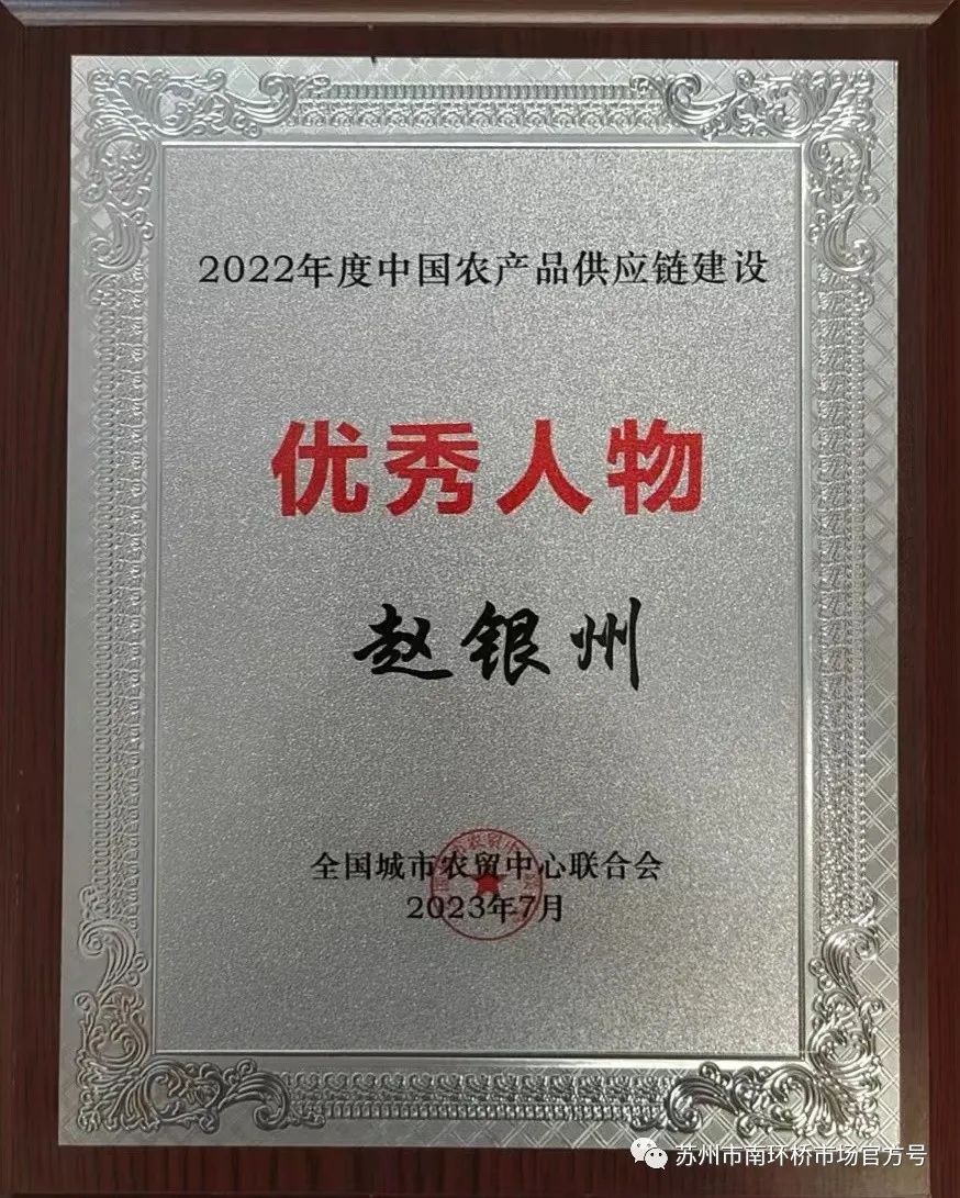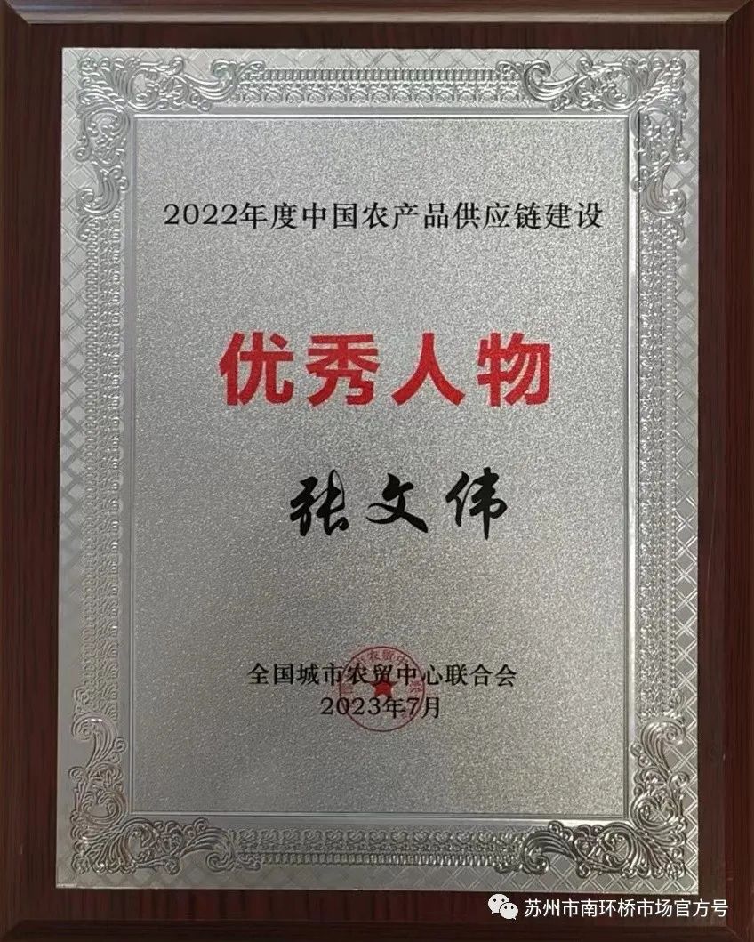 会上,全国城市农贸中心联合会还表彰了农批行业中的先进单位及优秀商户。以中苏咏盛、农盛源、沈露水产等为代表的3家南环桥市场商户荣获“2022年度中国农产品供应链建设优秀人物”称号。